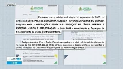 Deputados do Amazonas aprovam inclusão de empréstimo de R$ 3,2 bilhões no orçamento para 2026, visando quitação de dívidas internas.